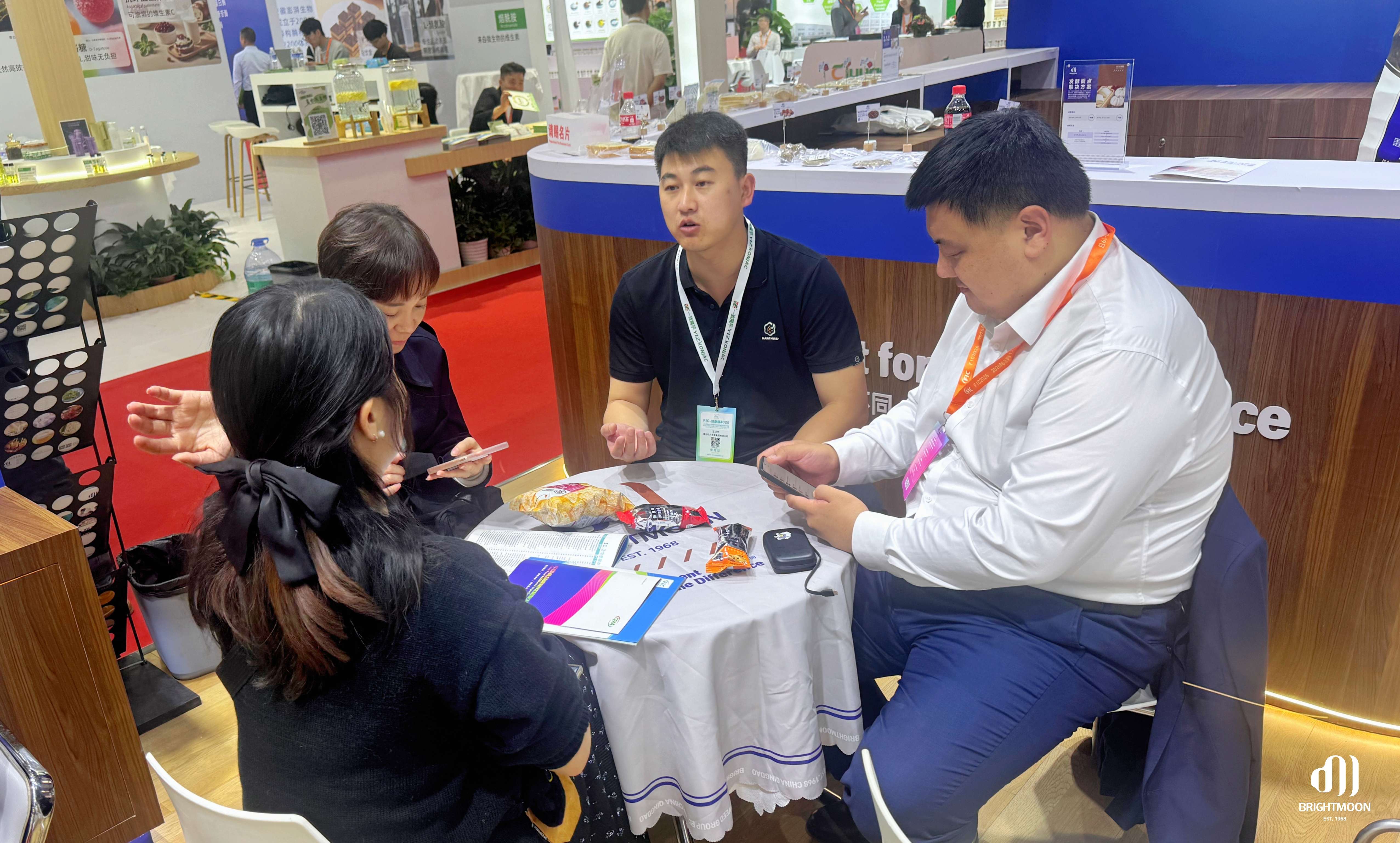 展會期間,明月展位始終熱度不減。專業(yè)團隊以產(chǎn)品展示、技術(shù)交流和場景化示范,向現(xiàn)場觀眾集中呈現(xiàn)“海藻功能原料×食品創(chuàng)新”的前沿趨勢,吸引了大量行業(yè)伙伴駐足探討,共同尋找下一代食品創(chuàng)新方向。