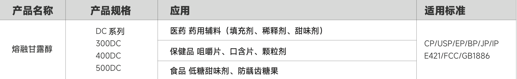 熔融制粒甘露醇是通過熔融制粒工藝制備的甘露醇顆粒,具有良 好的流動性、壓縮性和顆粒均勻性,適用于對壓片性能要求較高 的制劑工藝。該系列產(chǎn)品特別適用于口崩片、咀嚼片、速釋片等 固體制劑的制備。
